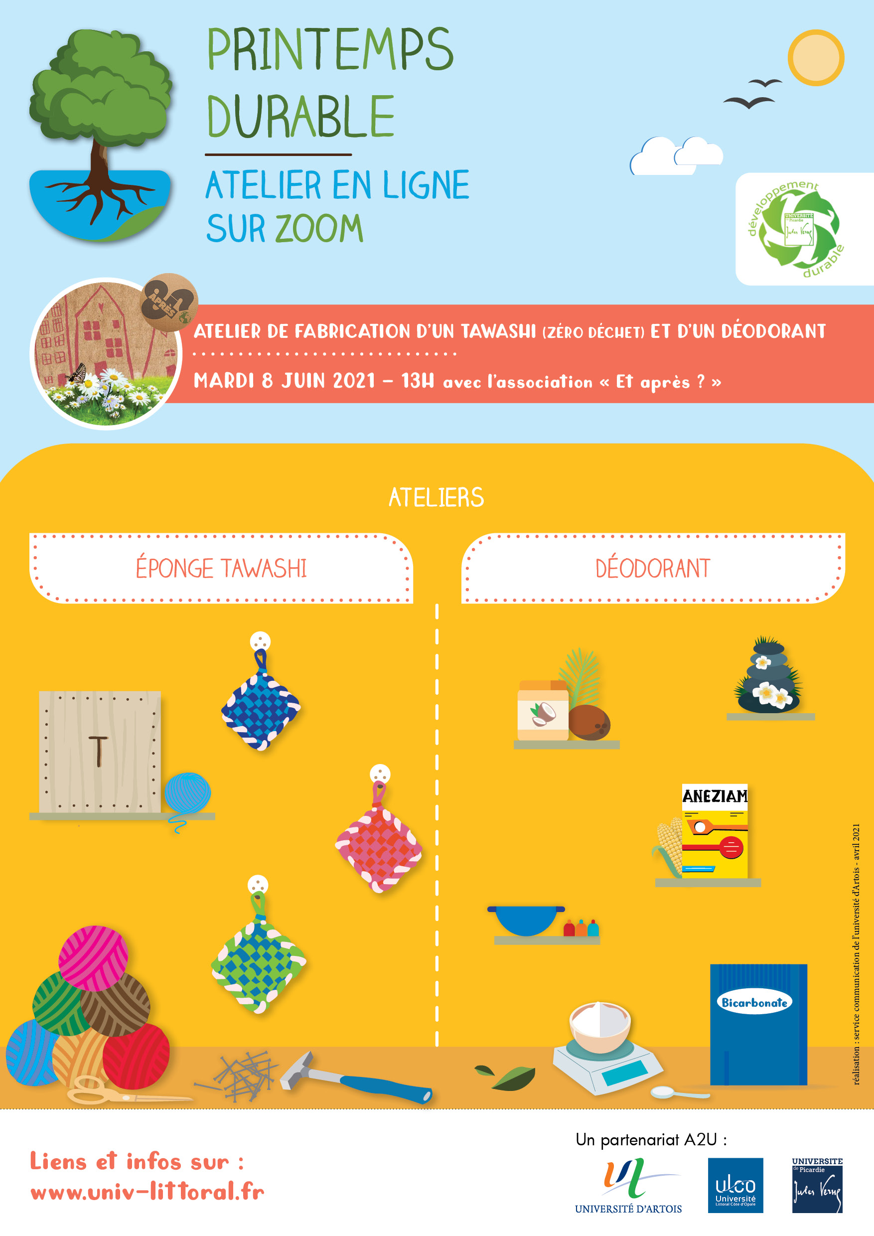 « Le Printemps Durable » 2021 : Cycle d’ateliers en ligne – 3ème atelier : 8 juin 2021 à 13 h – Fabrication d’un tawashi et d’un déodorant