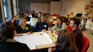 – Séance de « World Café » en 4 sous-groupes de 5-6 personnes : chaque sous-groupe propose, à tour de rôle sur des paper boards, des idées sur chacune des 4 actions proposées. Chaque groupe rajoute ses idées à celles du groupe précédent.