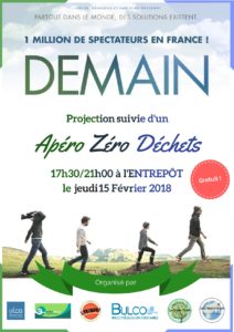 ENERULCO en partenariat avec La Green Team et Géo-Trotteurs, vous donne rendez-vous pour un Ciné Vert, avec la projection du film Demain, suivie d’un « Apéro Zéro Déchet ».
