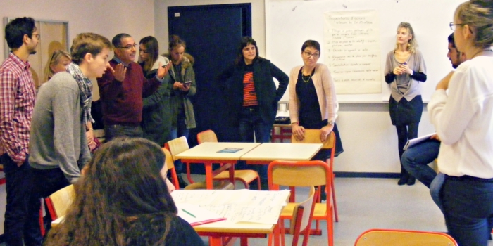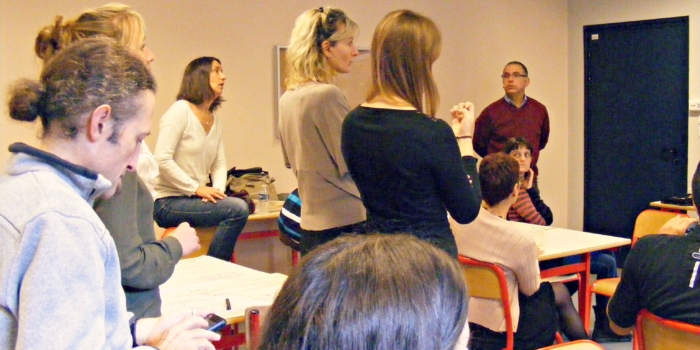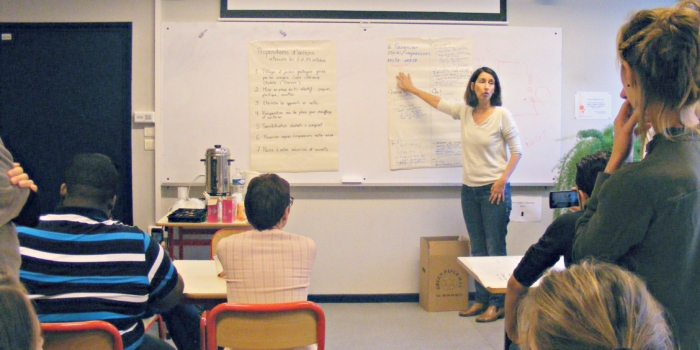 Cinq groupes se sont constitués afin de réfléchir sur ces différentes propositions, durant environ 45 minutes. Ensuite chaque groupe a présenté ses premières pistes d’action ; les autres groupes ont pu ainsi réagir et enrichir celles-ci.