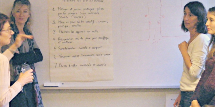 Entre temps, le groupe d’étudiants de Master 1 EGEDD (Economie et Gestion de l’environnement et du Développement durable) se charge de collecter les informations nécessaires pour alimenter la démarche (contacts avec les partenaires professionnels, associatifs et institutionnels, demandes de devis, inventaire de matériels disponibles…).